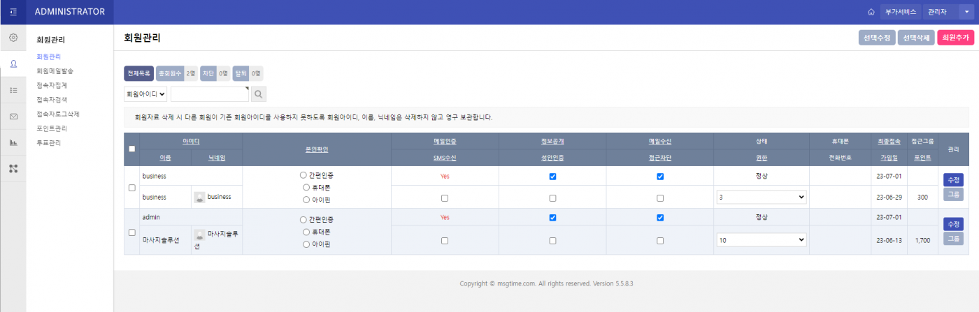 1. 회원은 2, 3 레벨만 사용합니다. 레벨2는 일반회원 레벨3은 업체회원입니다.