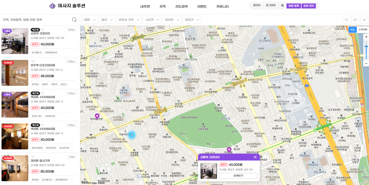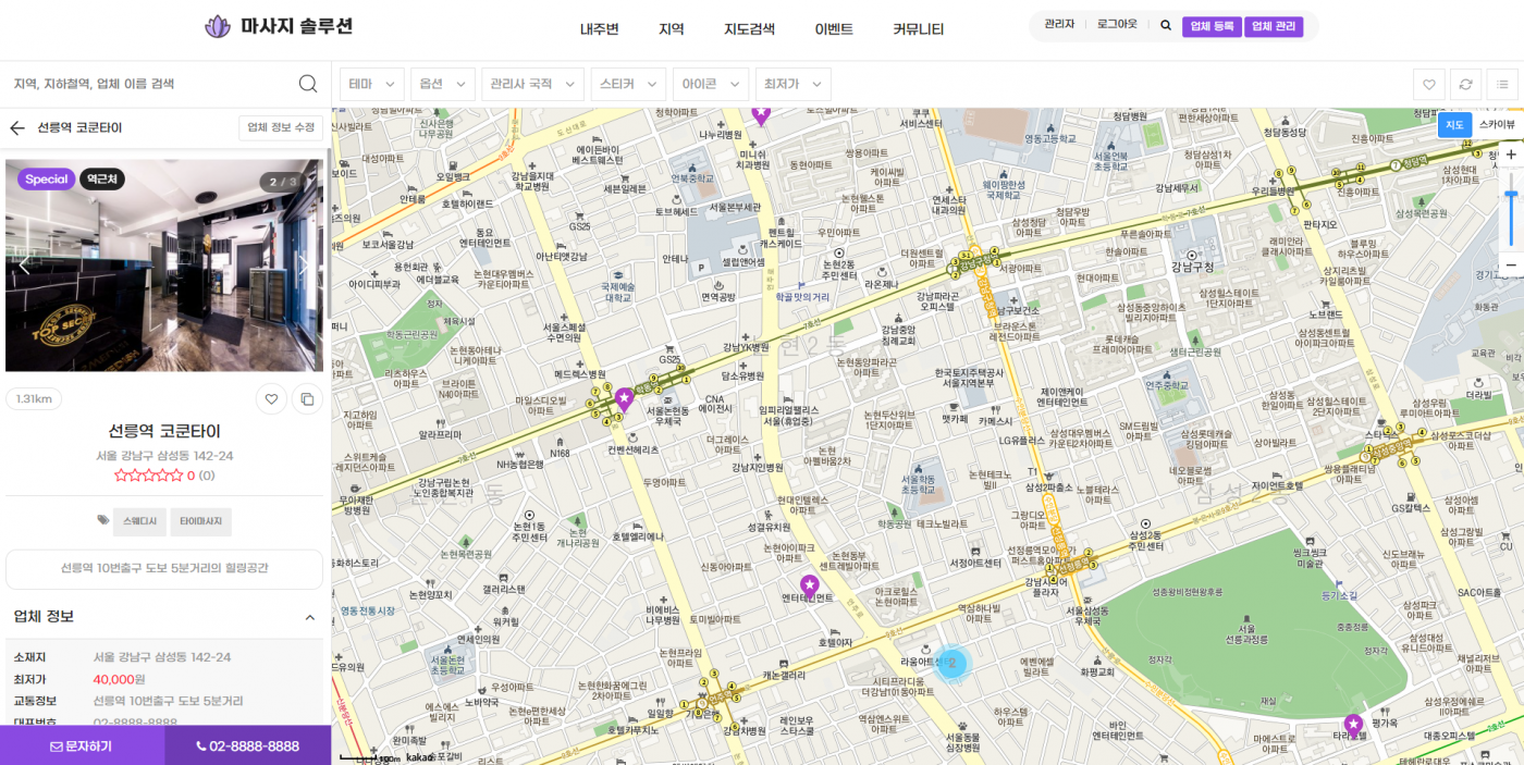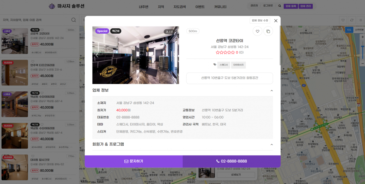 4. 업체를 클릭하면 아래와 같이 레이어로 뜹니다.